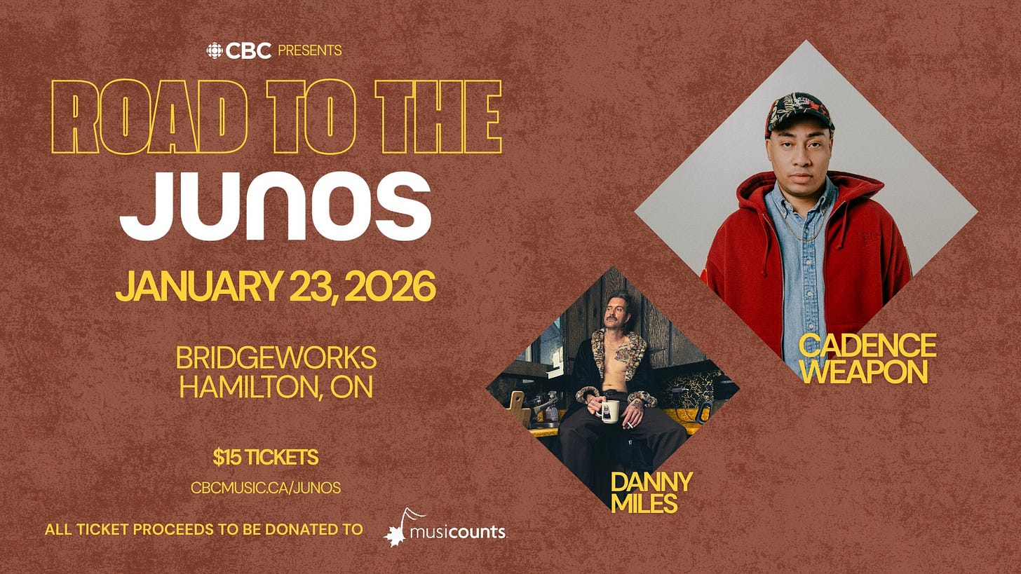 If you’re in Hamilton this Friday, come see me play unreleased songs from my upcoming album with a full band for CBC Road to the Junos at Bridgeworks. The whole thing will be filmed and televised on CBC Gem so you’ll all have a chance to check it out eventually but if you’re in the Hammer, get your tickets here.